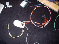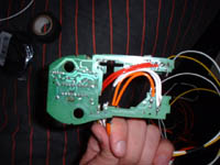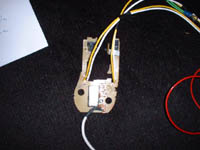 Now go to your trackball, and cut the white plug from the cables coming from the two optic boards. Join the two red wires