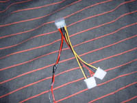 together, and also the two black wires, and connect these to your power leads coming from the PC. I used blade connectors so it can be easily disconnected if necessary.